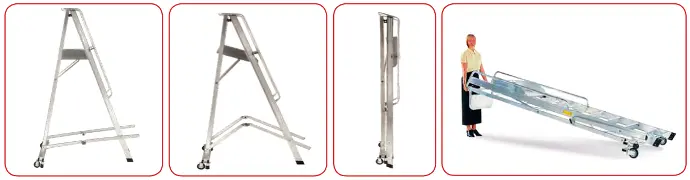 Dankzij het slimme ontwerp met aluminium scharnieren is de trap snel en eenvoudig in te klappen, met een compacte transportafmeting als resultaat.