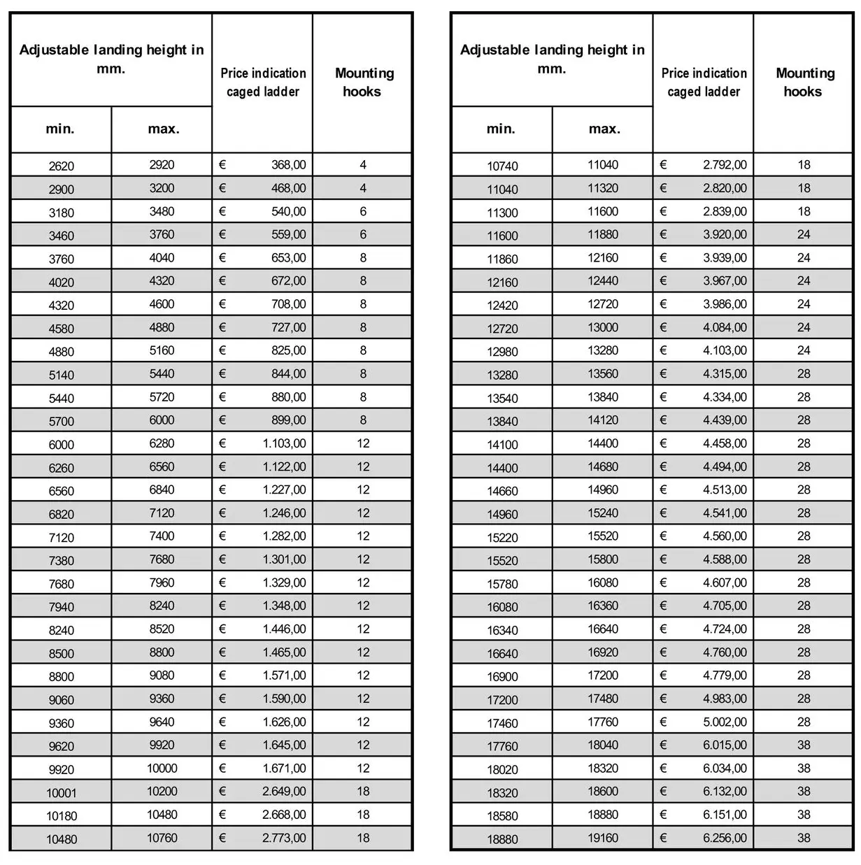 De kooiladder die op deze afbeeldingen wordt getoond is 10,75 m hoog en bevat een rustbordes en een overstap brug met beveiliging. Beide modules werden gedemonteerd geleverd, net als de kooi zelf (zie afbeelding van de super-compacte verpakking op een enkele pallet). De ladder werd op de grond gemonteerd en vervolgens in slechts 4 uur door 2 monteurs aan de muur bevestigd, die het voor de eerste keer zagen.