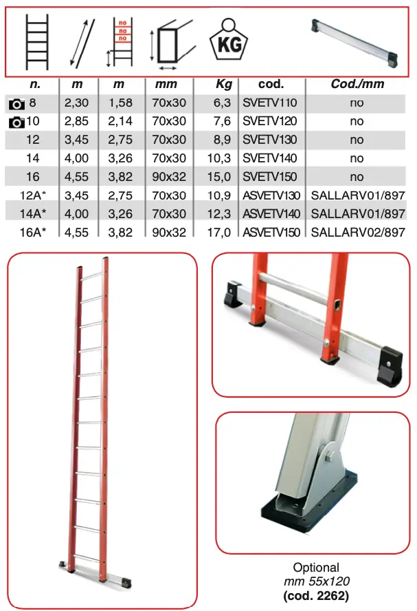 SVELT V1 Enkele Glasvezel Ladder 8 t/m 16 sporten